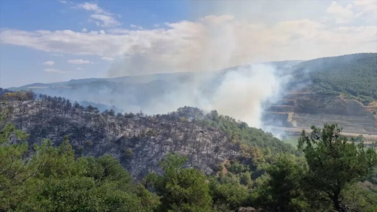 Tokat'ın Erbaa ilçesinde dün ormanlık alanda çıkan ve ekiplerin yoğun çabalarıyla söndürülen yangın alanı dronla görüntülendi.Karanlık Dere mevkisinde henüz belirlenemeyen...